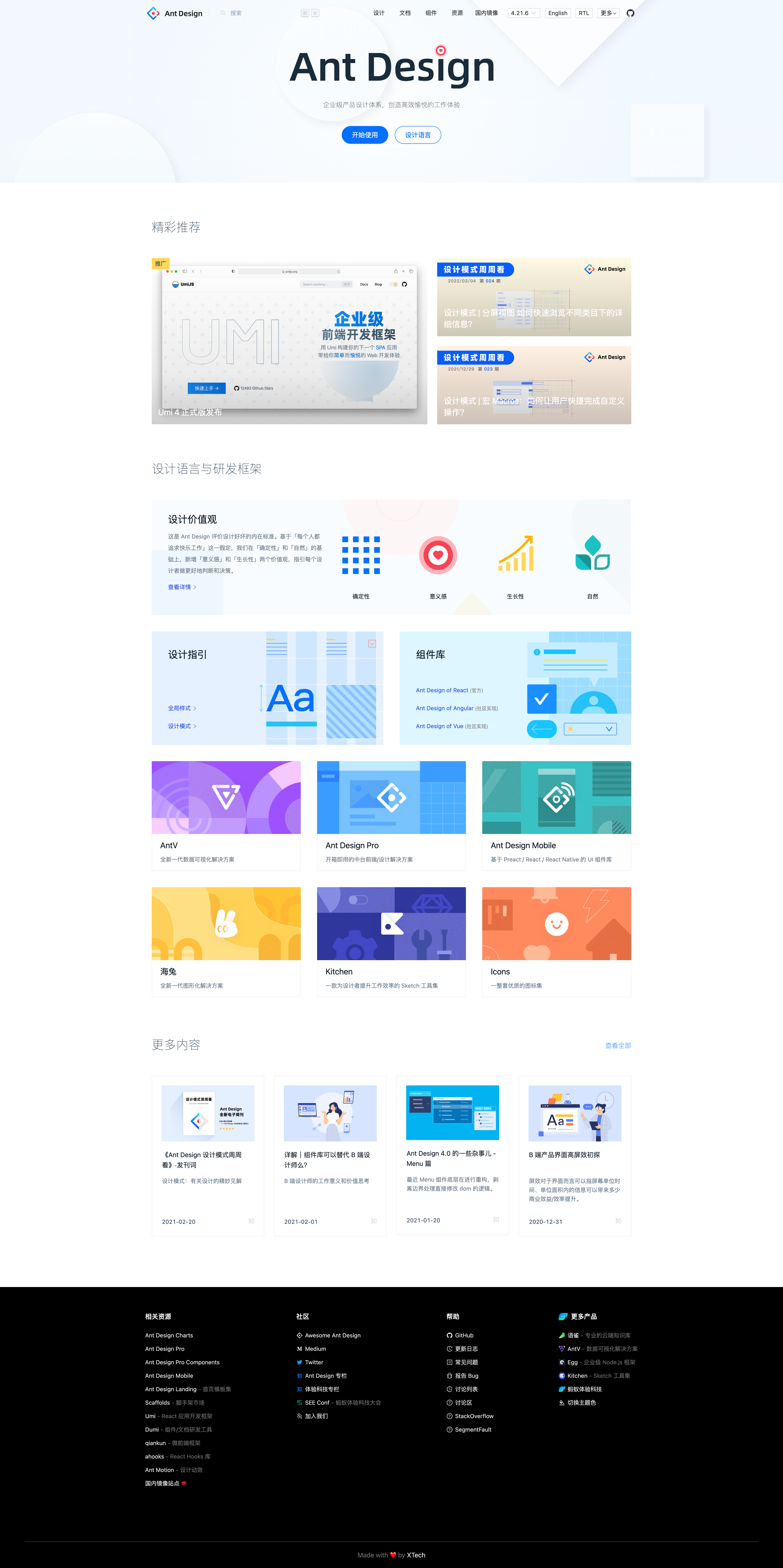 Ant Desigin有很庞大的体系,通过之前的阅读源码我们触及到了其体系下的多个npm包——“@ant-design/tools”、rc-\*组件,还有官网footer下的一些相关资源推荐。
